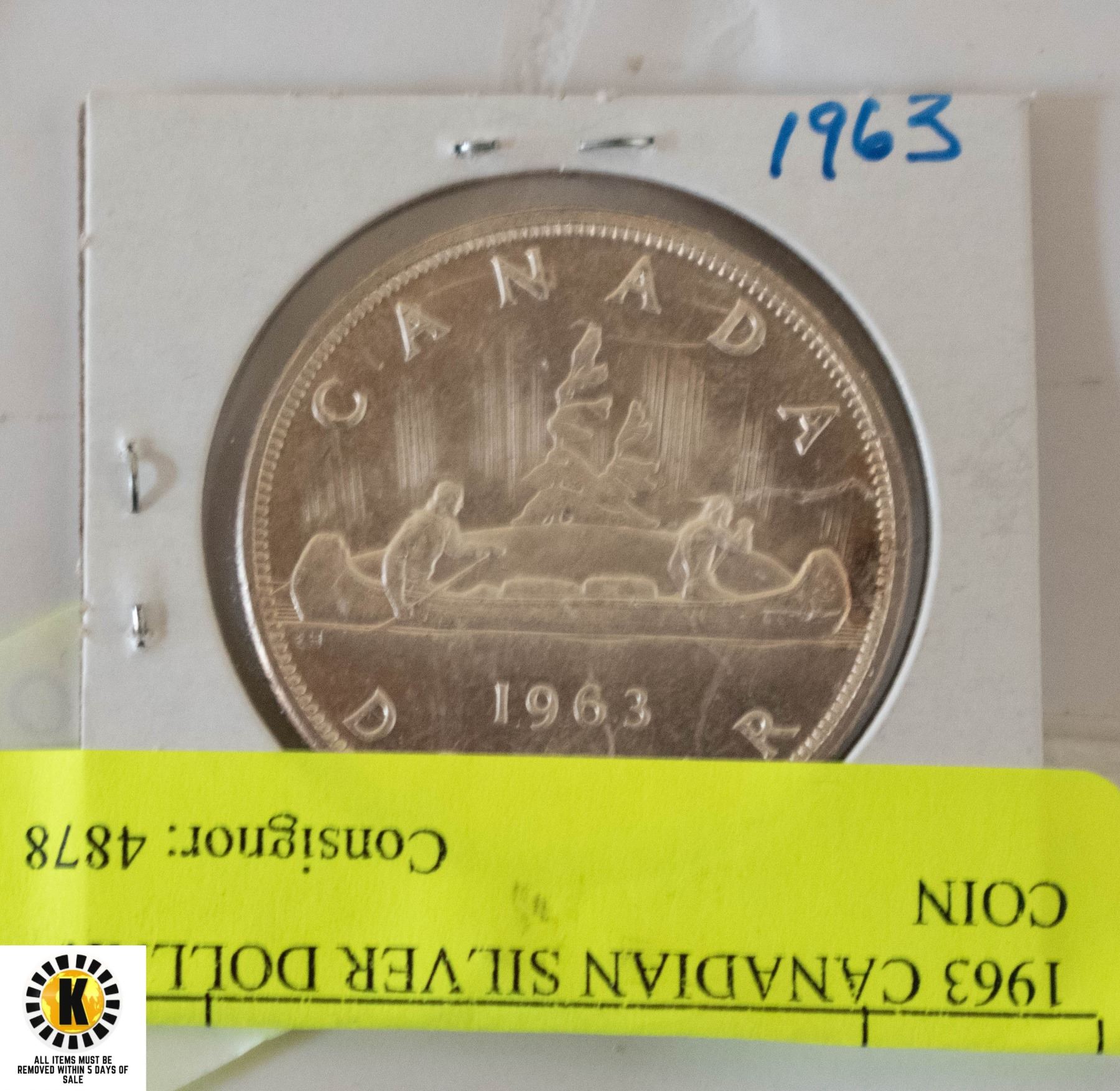 1963 CANADIAN SILVER DOLLAR COIN