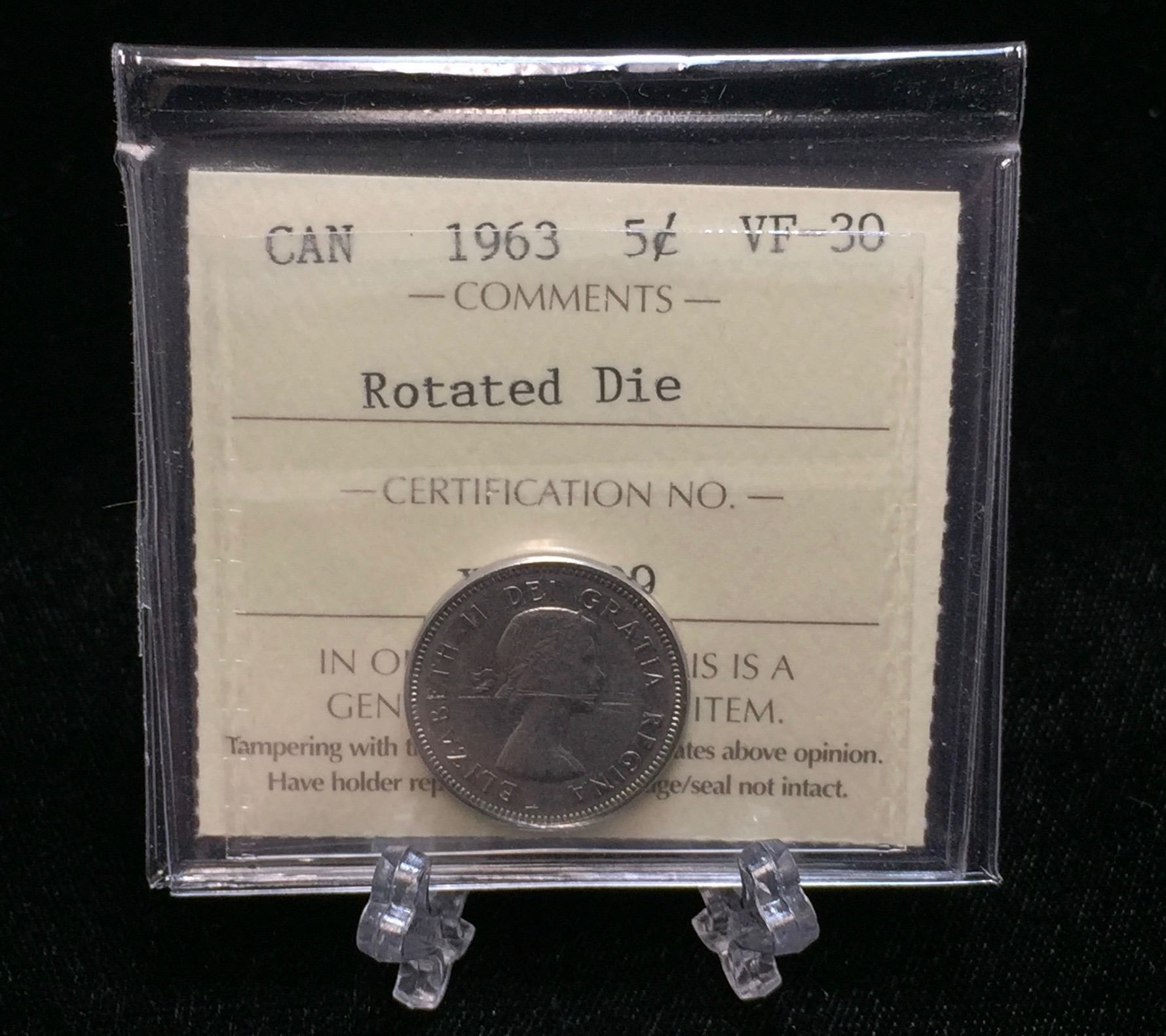 Lot 222; 1963 Canada 5-Cents ICCS VF-30 Rotated Die