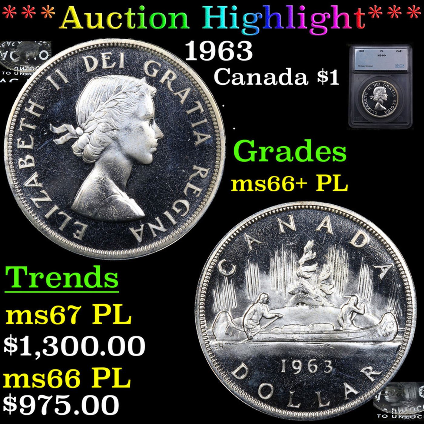 1963 Canada Dollar $1 Graded ms66+ PL BY SEGS.