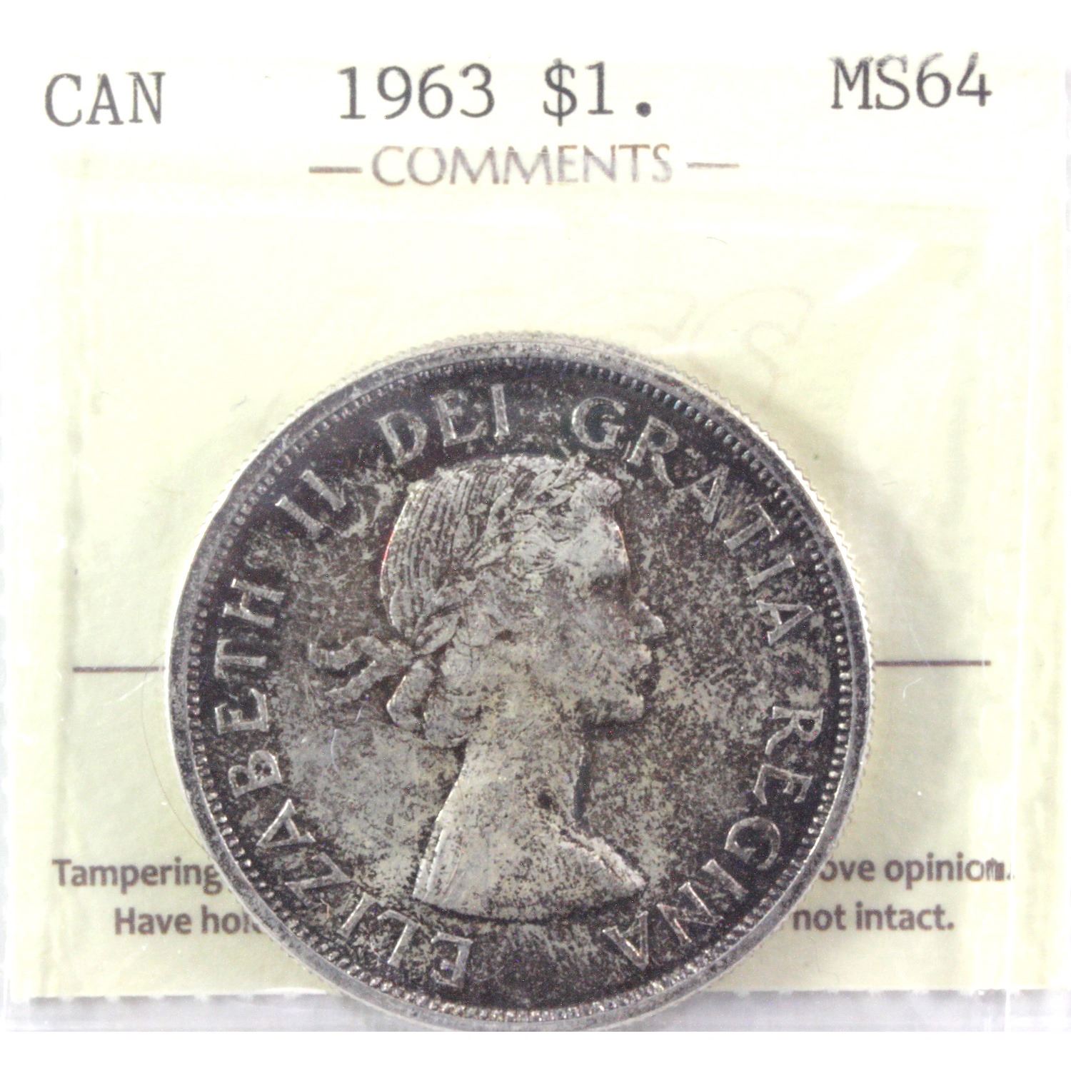 1963 Canada Dollar ICCS Certified MS-64. Toning.