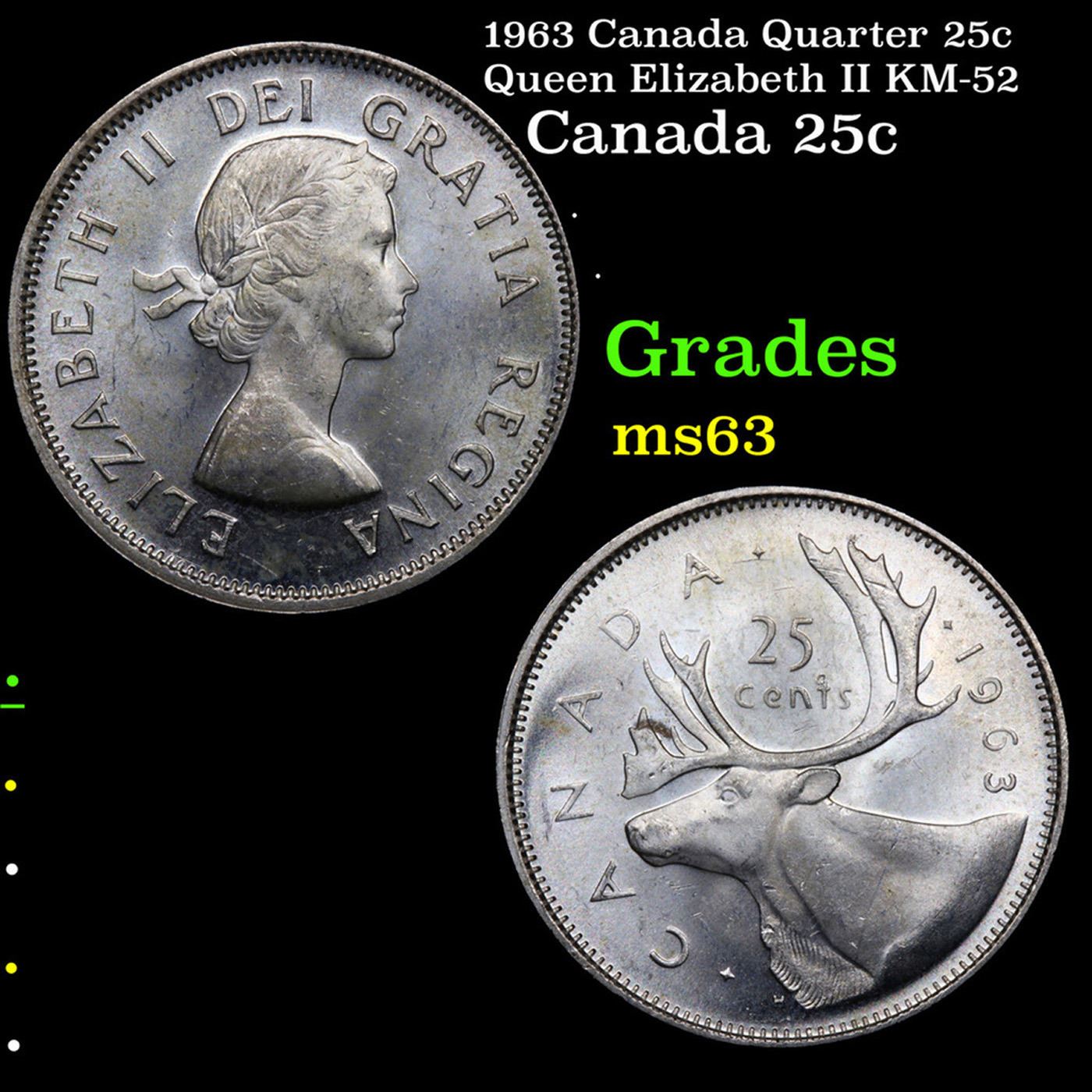 1963 Canada Quarter 25c Queen Elizabeth II KM-52 Grades Select Unc.