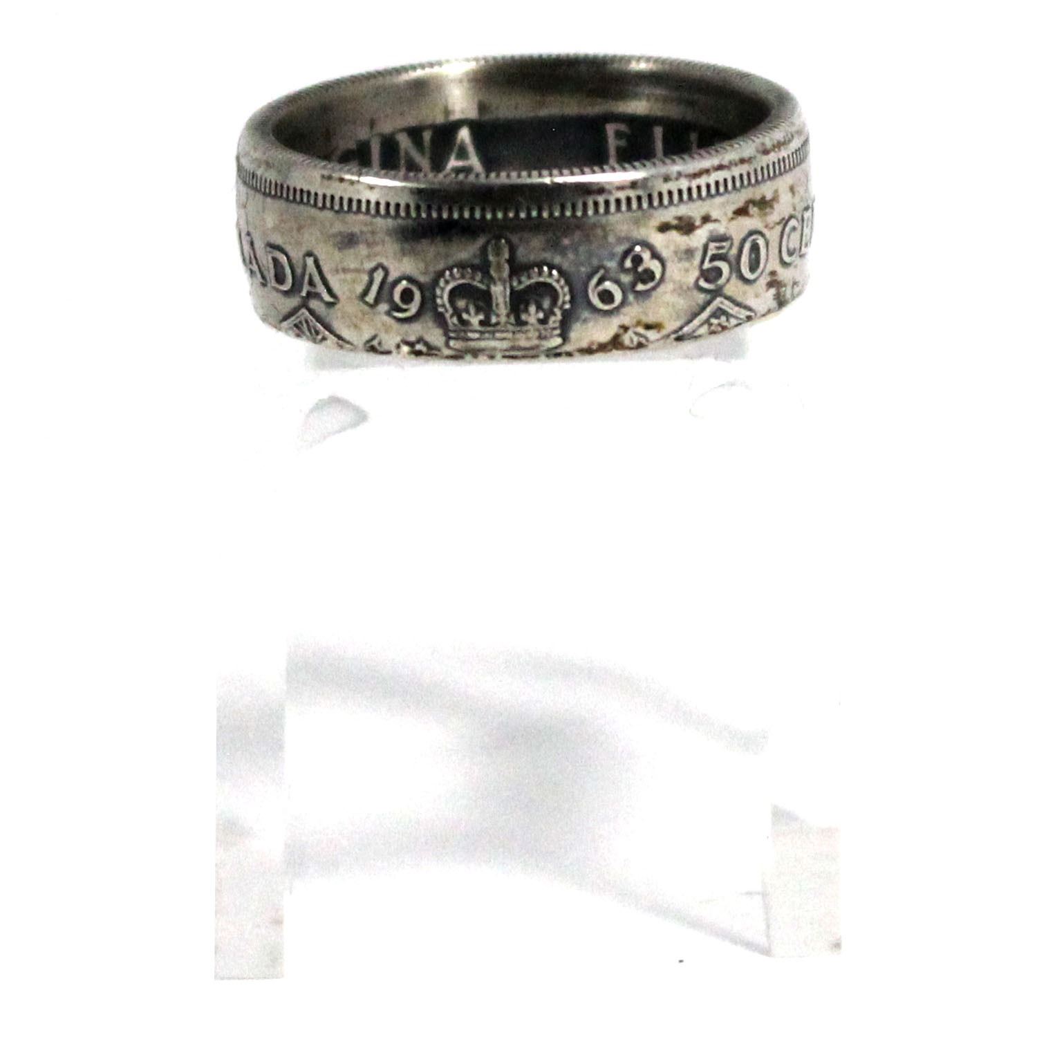 1963 Canada Silver 50ct Coin Custom Jewellery Ring Size 10 - Made from a real 50-cent coin!