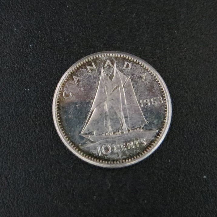 1963 Canadian Silver 10 Cent Coin