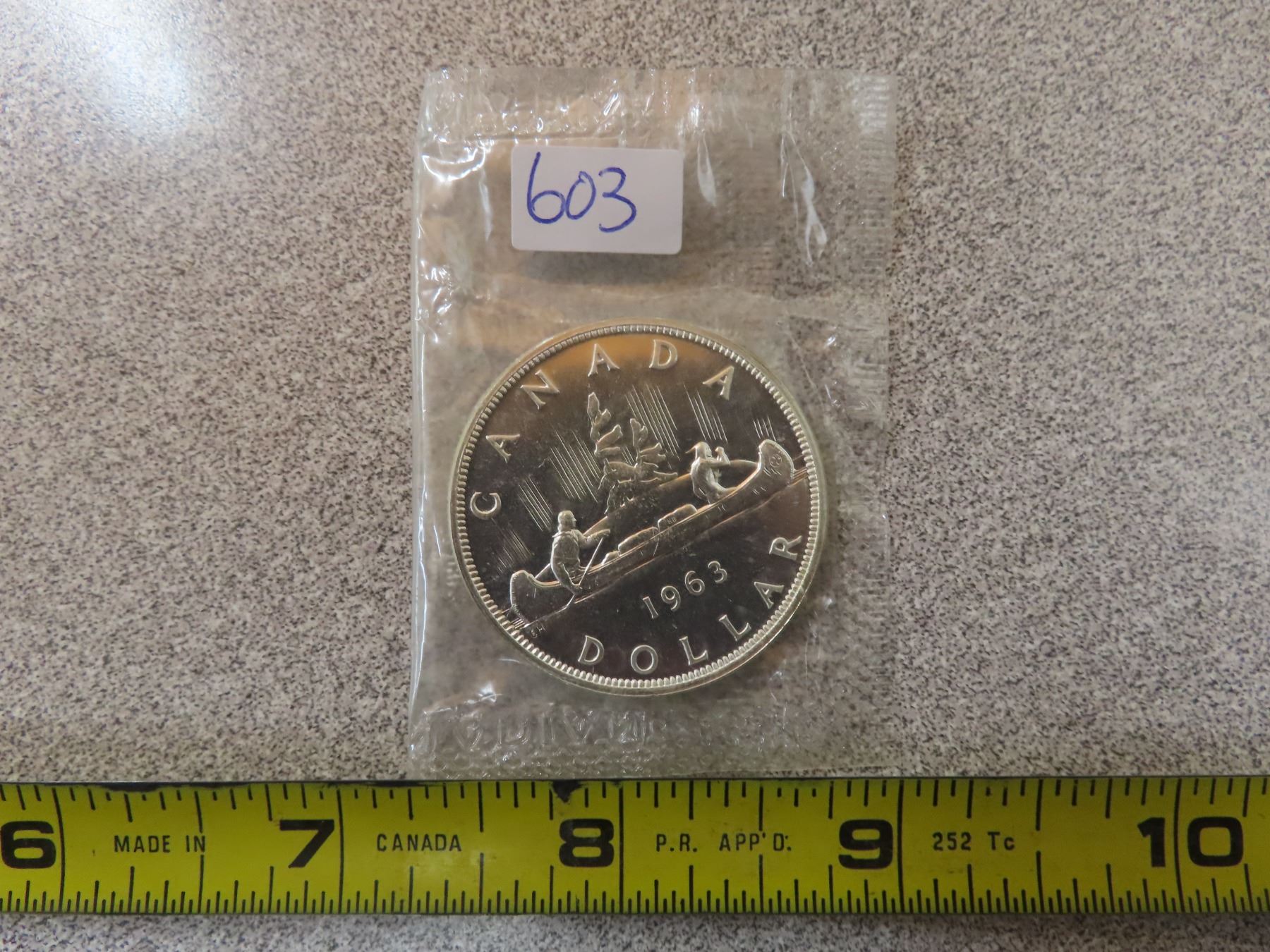 1963 Canadian Silver Dollar. Proof Like -65 in original Royal Canadian Mint soft plastic.