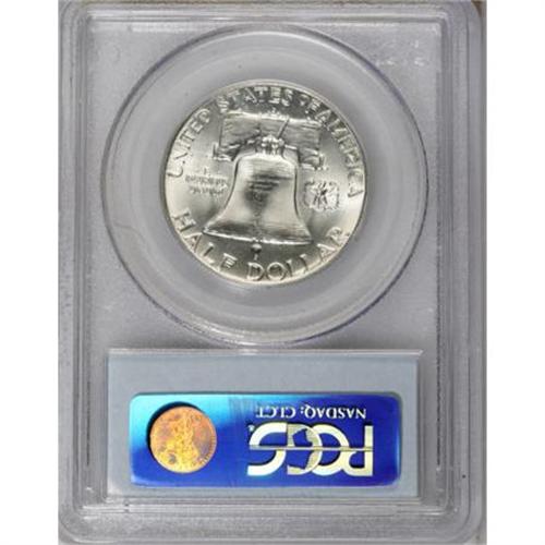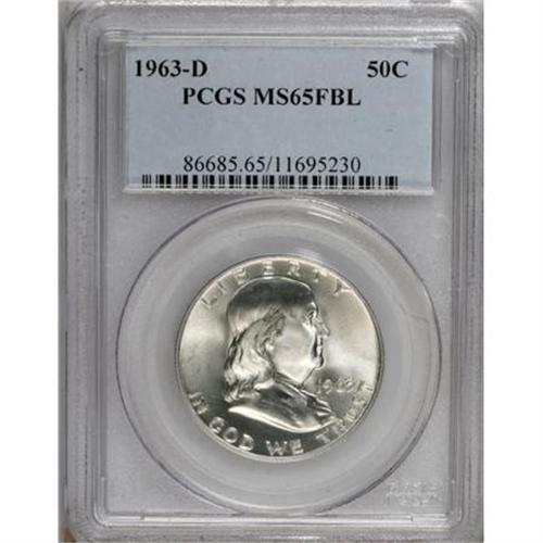 <B>1963-D 50C MS65 Full Bell Lines PCGS.</B></I> PCGS Population (707/59). NGC Census: (253/16). Numismedia Wsl. Price for NGC/PCGS coin in MS65: $110. (#86685)<BR><BR><b>Shipping:</b> Coins & Currency (<a target="_blank" href="http://www.heritageauctions.com/common/shipping.php">view shipping information</a>)