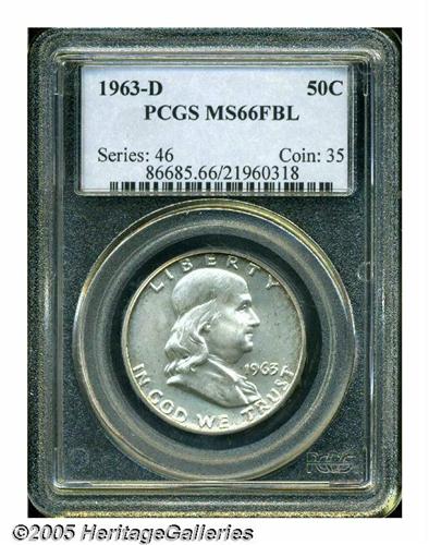<B>1963-D<50C> MS66 Full Bell Lines PCGS.</B></I> Bright and satiny with a trace of light peripheral color. Very scarce in this superior state of preservation. Population: 51 in 66, 0 finer (5/05).