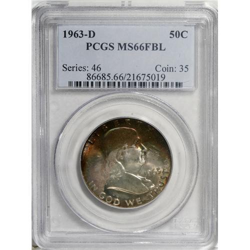 <B>1963-D 50C MS66 Full Bell Lines PCGS.</B></I> Rainbow iridescence highlights both sides of this beauty with splashes of silvery-white brilliance shining through. Seldom are originally toned Gem examples of this issue available.<BR><I>From The Southern Collection.</B></I><BR><BR><b>Shipping:</b> Coins & Currency (<a target="_blank" href="http://www.heritageauctions.com/common/shipping.php">view shipping information</a>)