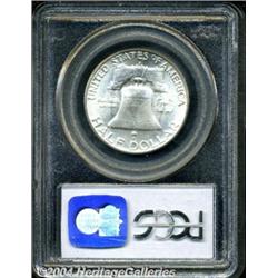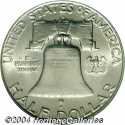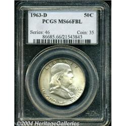 <B>1963-D<50C> MS66 Full Bell Lines PCGS.</B></I> Light silver-gray patina shows on the obverse with some peripheral rainbow colorations at the left side. The reverse is bright and essentially untoned. The satiny surfaces are virtually flawless, save for a couple of contact marks on the Liberty Bell and its cradle. Population: 41 in 66, 0 finer (7/04). <BR><BR><B>Important notice:</B> Heritage usually auctions material at the rate of 200-250 lots per hour. On some occasions eBay Live bid software or the Internet may not be able to keep up with the pace of the auction. We recommend placing a realistic absentee bid now as insurance to avoid disappointment. Occasionally the auctioneer may eliminate or reject an eBay Live bid, and the auctioneer may also reopen a lot after the close of the eBay live bidding (usually because we missed an audience bid), and may reject your bid even if it shows you as the winning bidder. By bidding via eBay Live, you agree that Heritage may award the lot to another bidder at its sole discretion under the circumstances described above or any other reasonable circumstances. Since eBay bids are not shown to us until we open the lot on the floor, we treat those bids just like floor bids. In most cases the floor responds before the eBay bid is presented to us, due to Internet lag time, so for consistency we have made it a policy that floor bids are always considered first over tie eBay live bids. Also please note that all Heritage lots purchased through eBay Live carry a 20% Buyer's Premium. Please make sure you read the Terms and Conditions before you bid. </span></font></tr></table></td></tr></table>