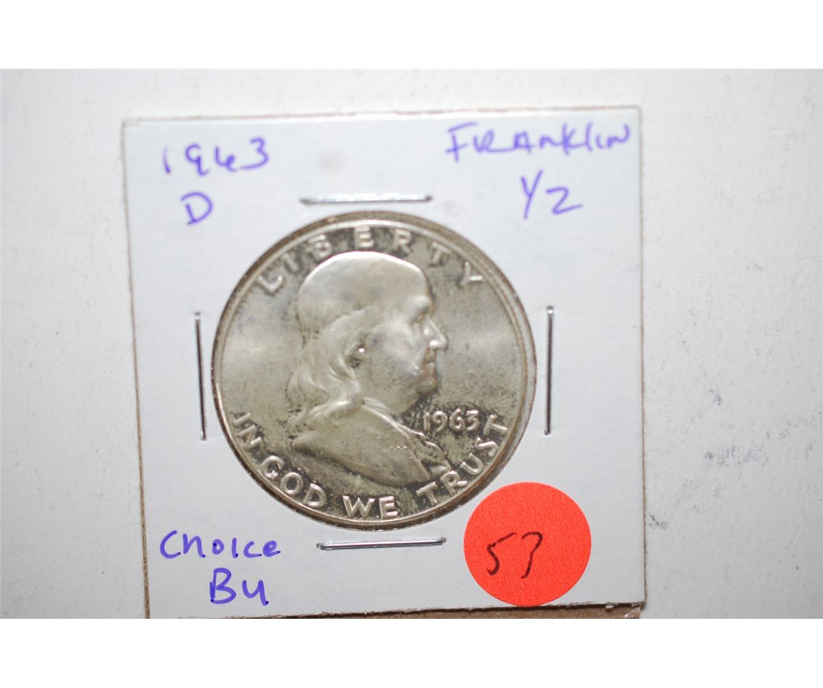1963-D Ben Franklin Half Dollar; Choice BU; EST. $15-25