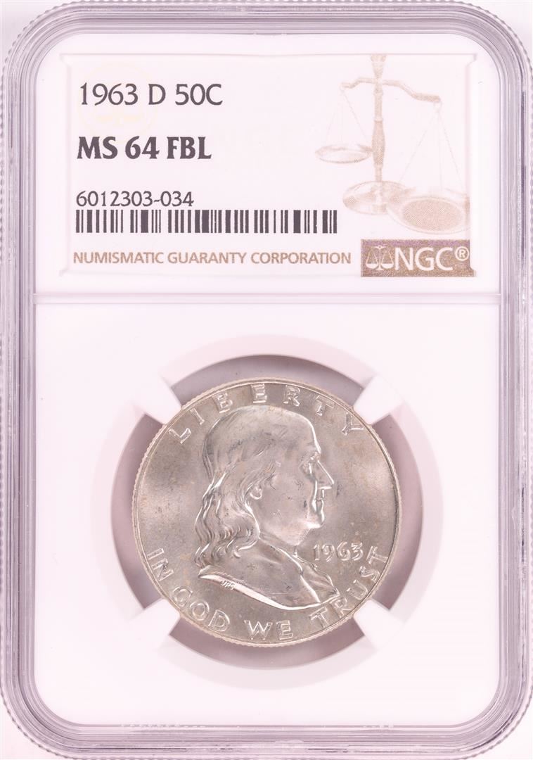 One 1963-D Franklin Half Dollar Coin NGC MS64FBL. NGC Certified.