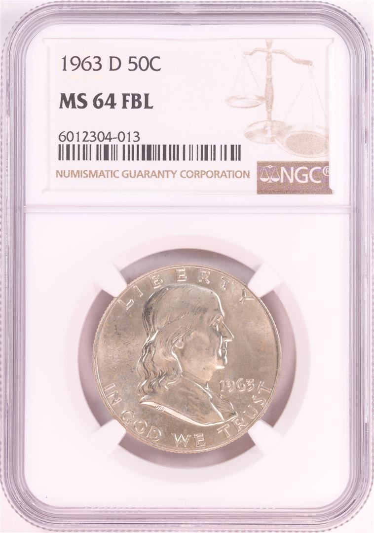 One 1963-D Franklin Half Dollar Coin NGC MS64FBL. NGC Certified.
