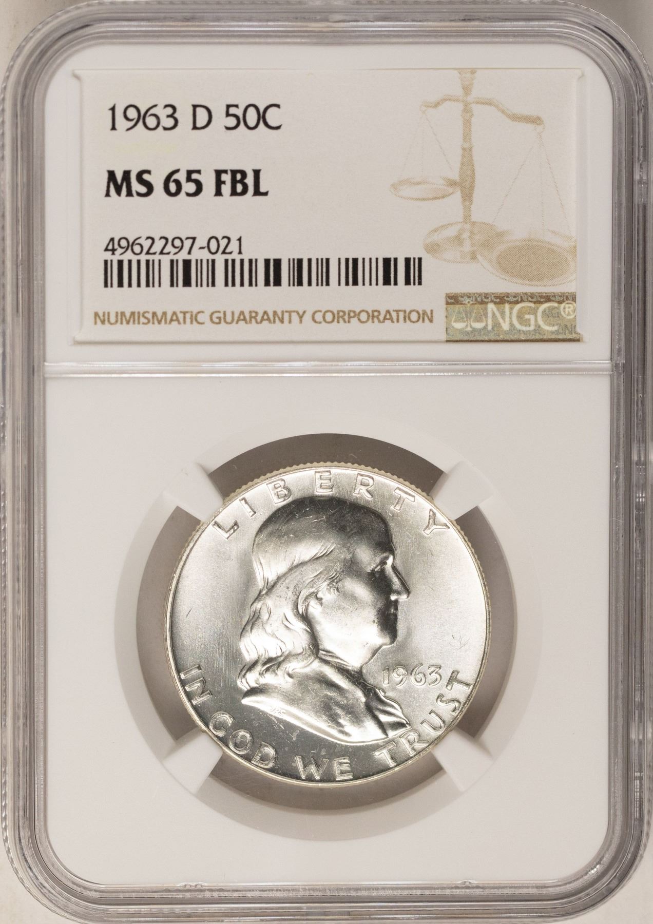 One 1963-D Franklin Half Dollar Coin NGC MS65FBL.