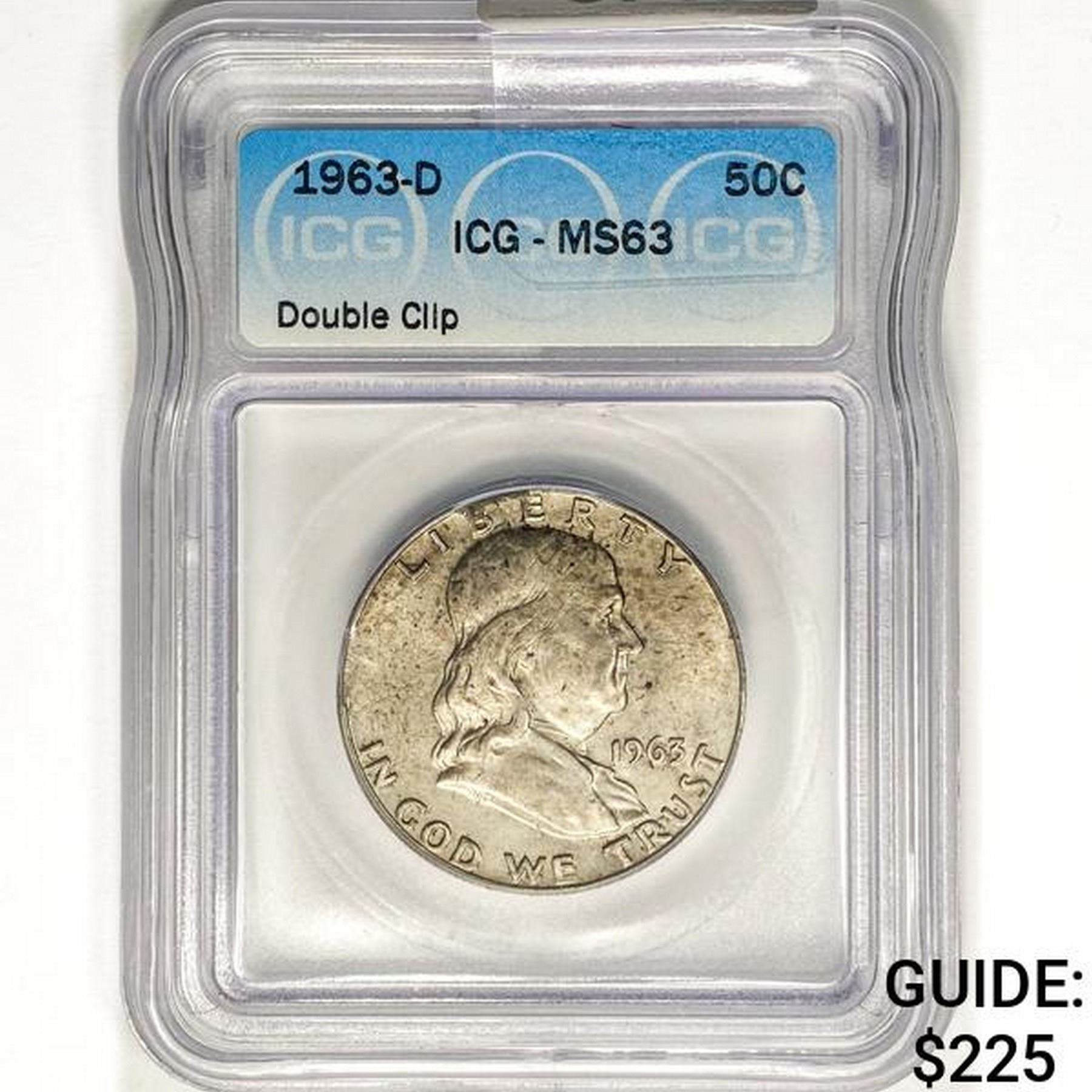 1963-D Franklin Half Dollar ICG MS63 Double Clip