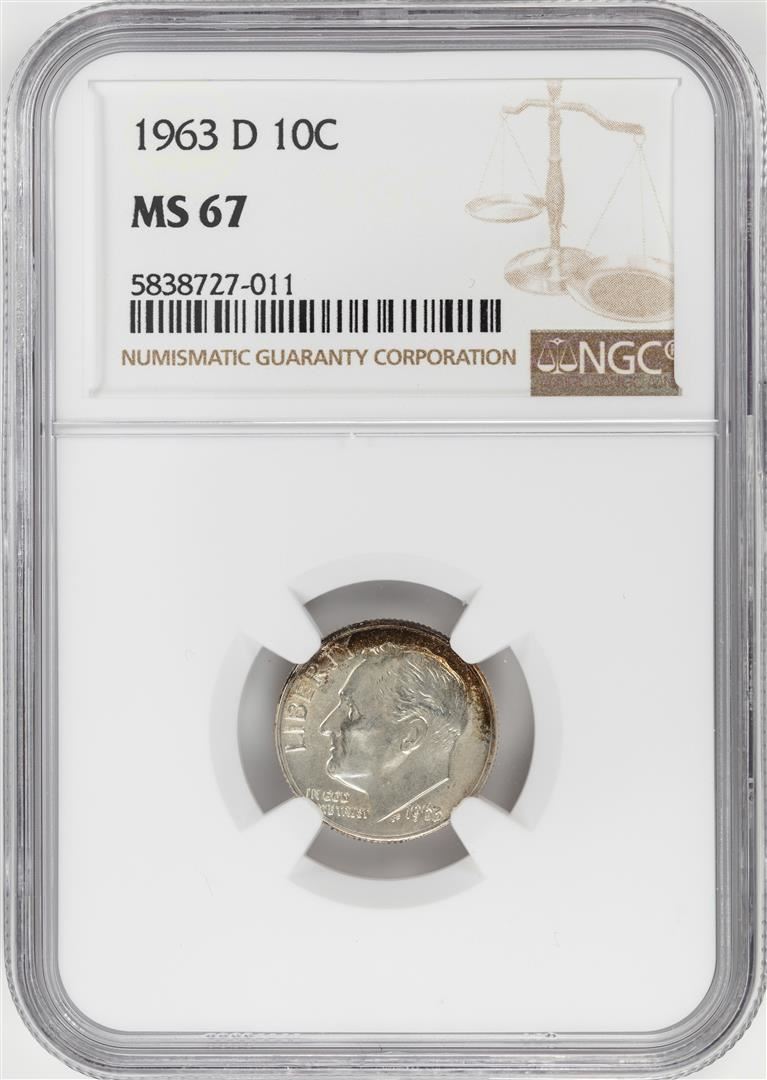 One 1963-D Roosevelt Dime Coin NGC MS67. NGC Certified.