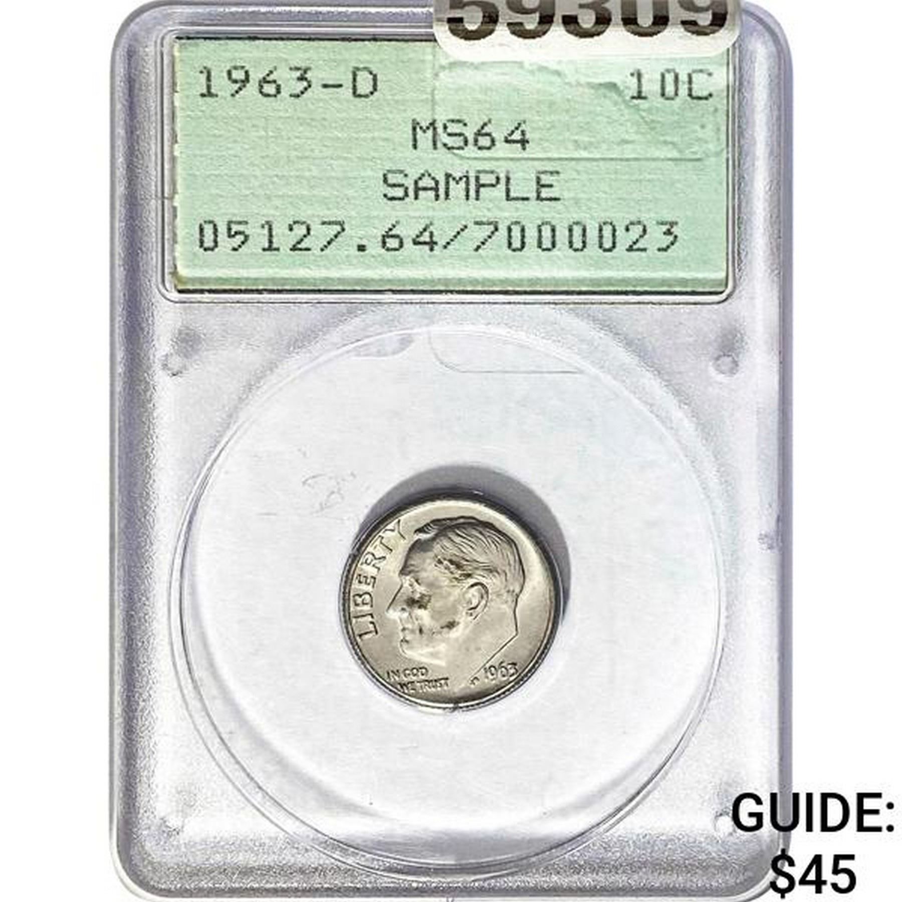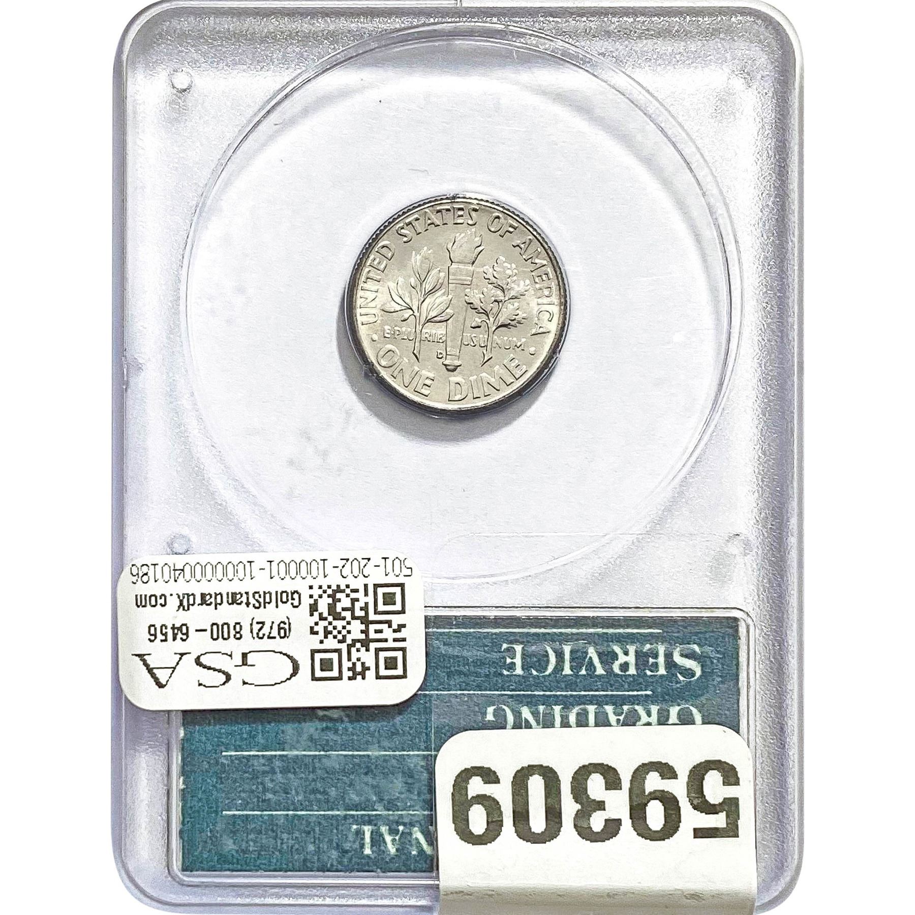 1963-D Roosevelt Dime GSA MS64 Sample