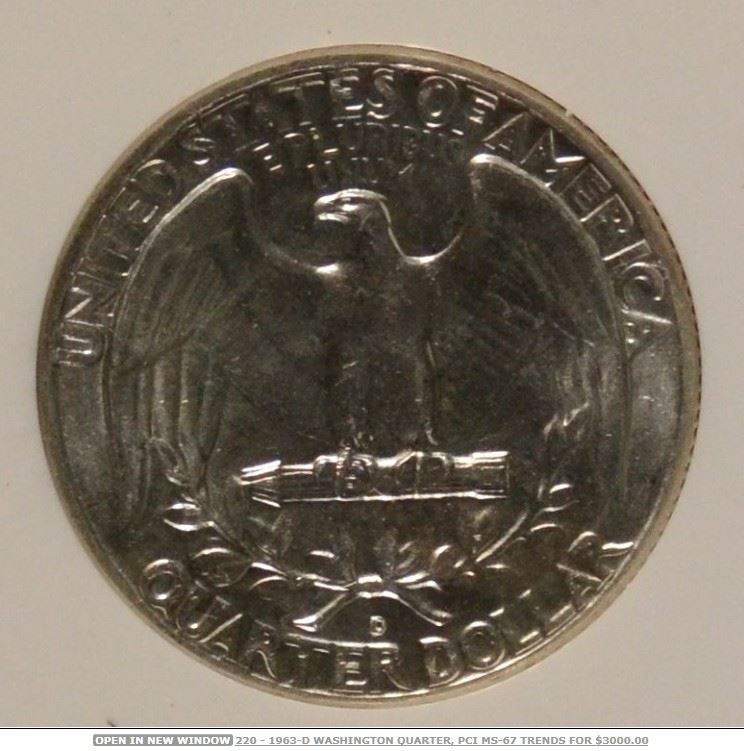 1963-D US Washington Quarter - MS 67!! - PCI MS 67!! - Value: $2900.00(US)