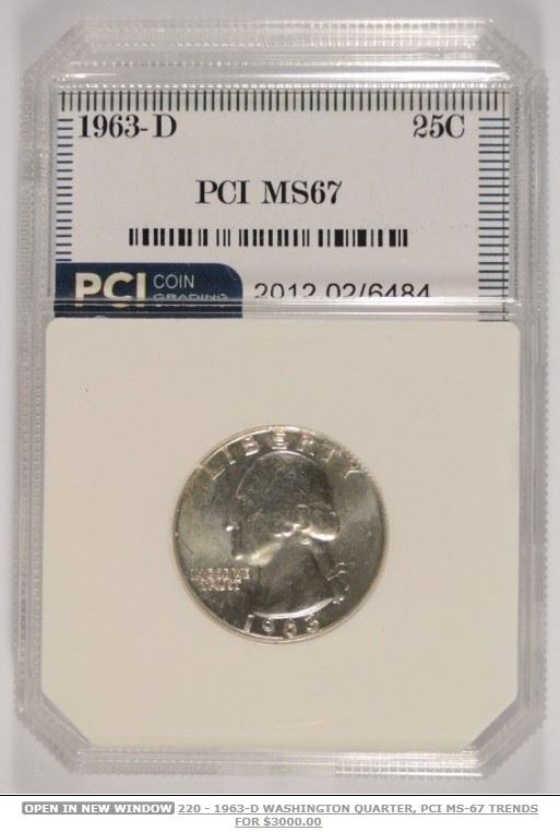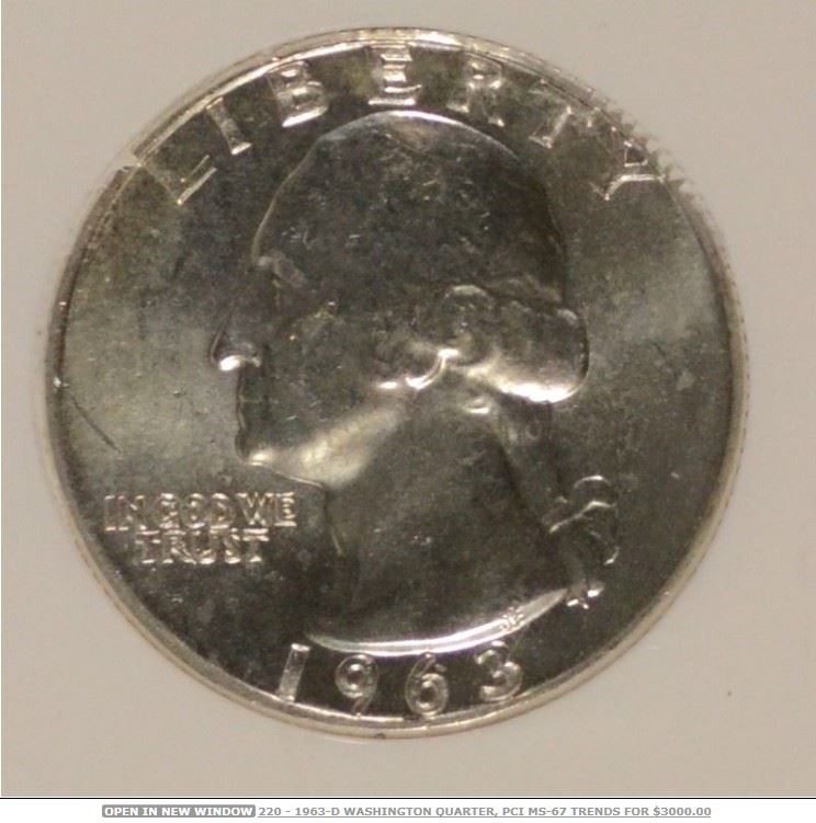 1963-D US Washington Quarter - MS 67!! - PCI MS 67!! - Value: $2900.00(US)