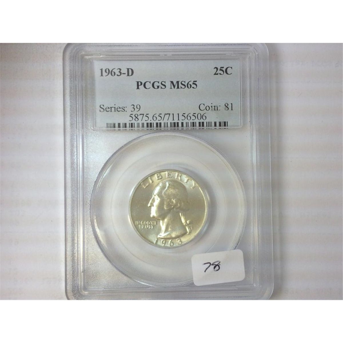 1963-D WASHINGTON SILVER QUARTER PCGS MS65