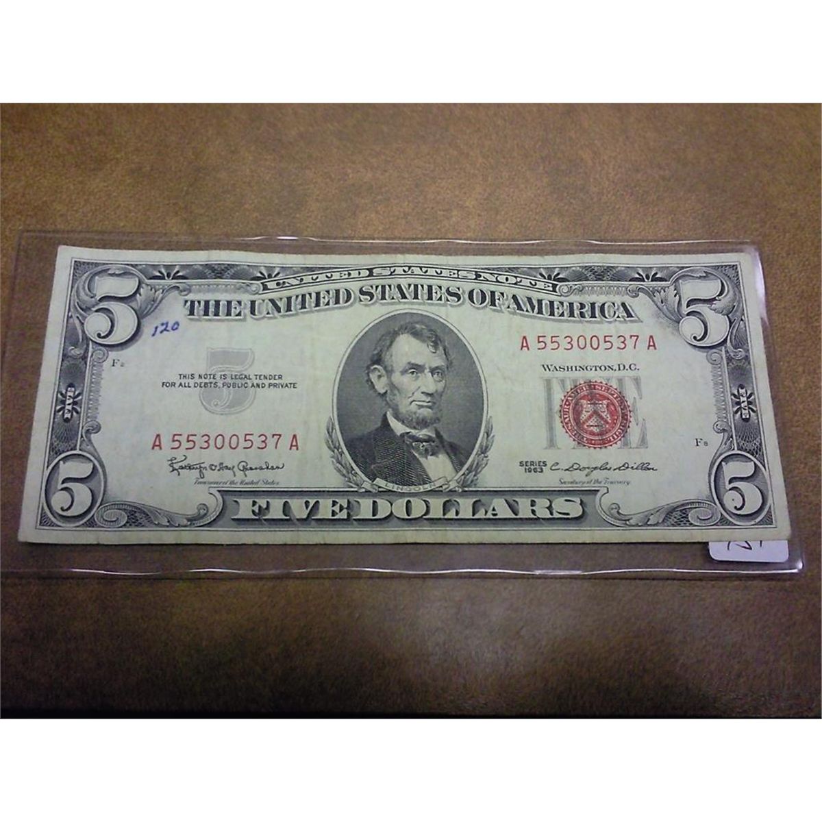 1963 FIVE DOLLAR US NOTE RED SEAL