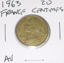 1963 FRANCE 20 CENTIMES *RARE AU HIGH GRADE!! COIN CAME OUT OF SAFE!! ***Coin, Currency & All Items Listed in this auction - Grades, Conditions and Values are not Safe Deposit Coins LLC Responsibilty. Grades, Condition and Values are determined by Consigner(s) & Buyers ONLY