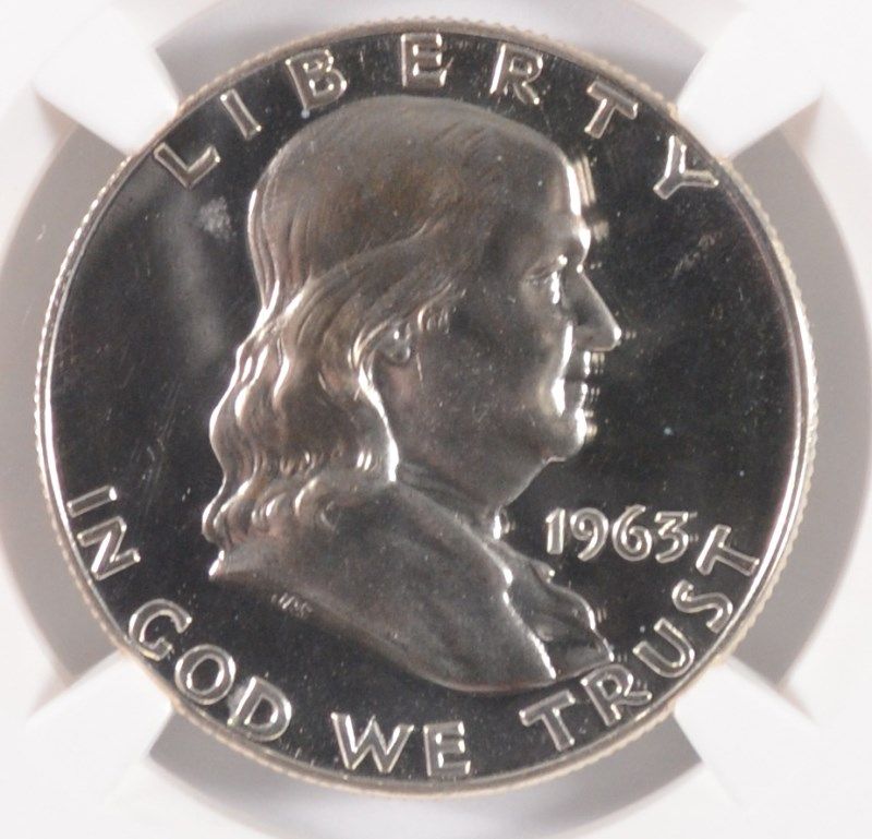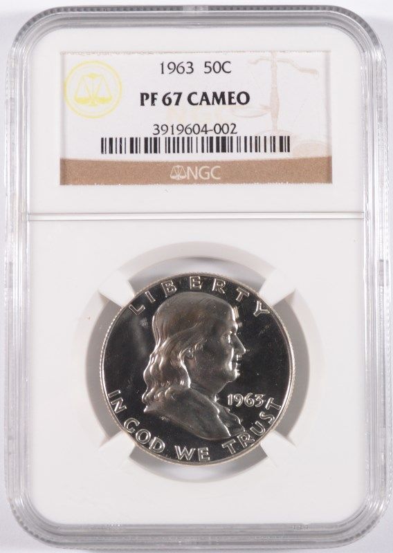 1963 FRANKLIN HALF DOLLAR, NGC PROOF-67 CAMEO!