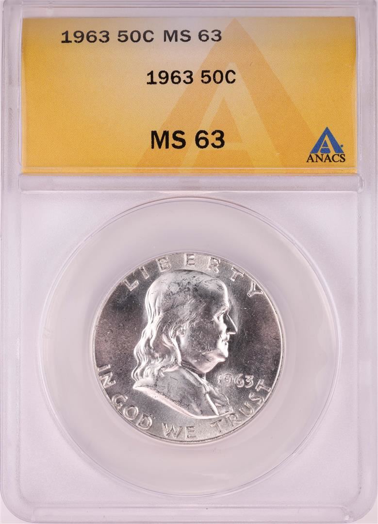 One 1963 Franklin Half Dollar Coin ANACS MS63. ANACS Certified.