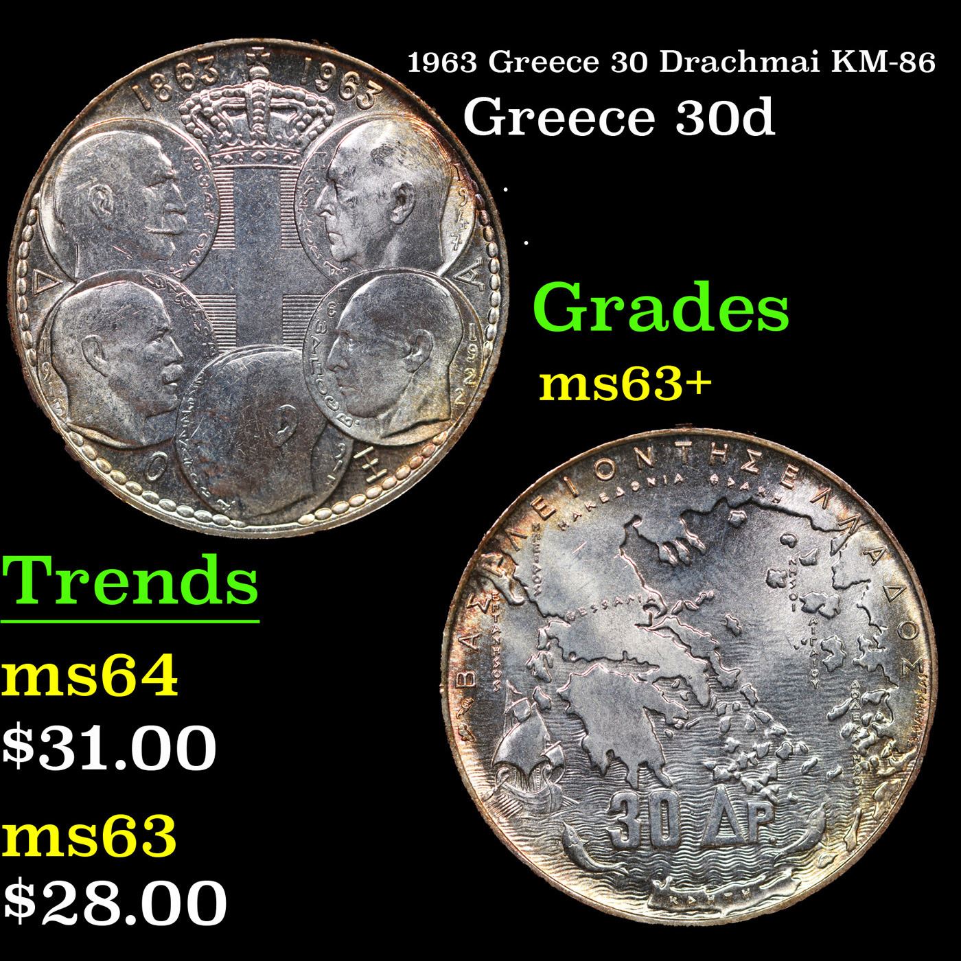 1963 Greece 30 Drachmai KM-86 Grades Select+ Unc.