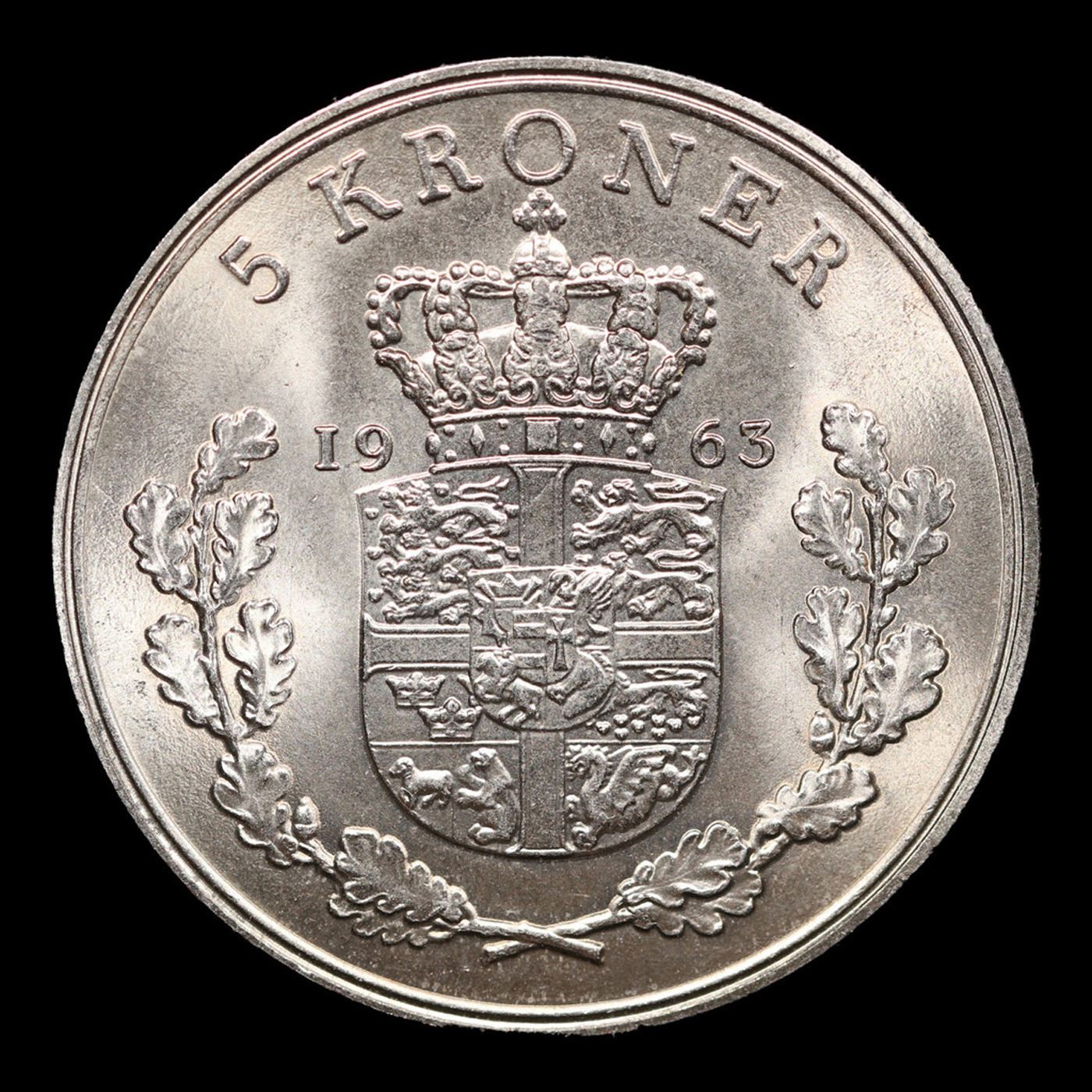 1963-H Denmark 5 Kroner KM-853.1 Grades GEM Unc.