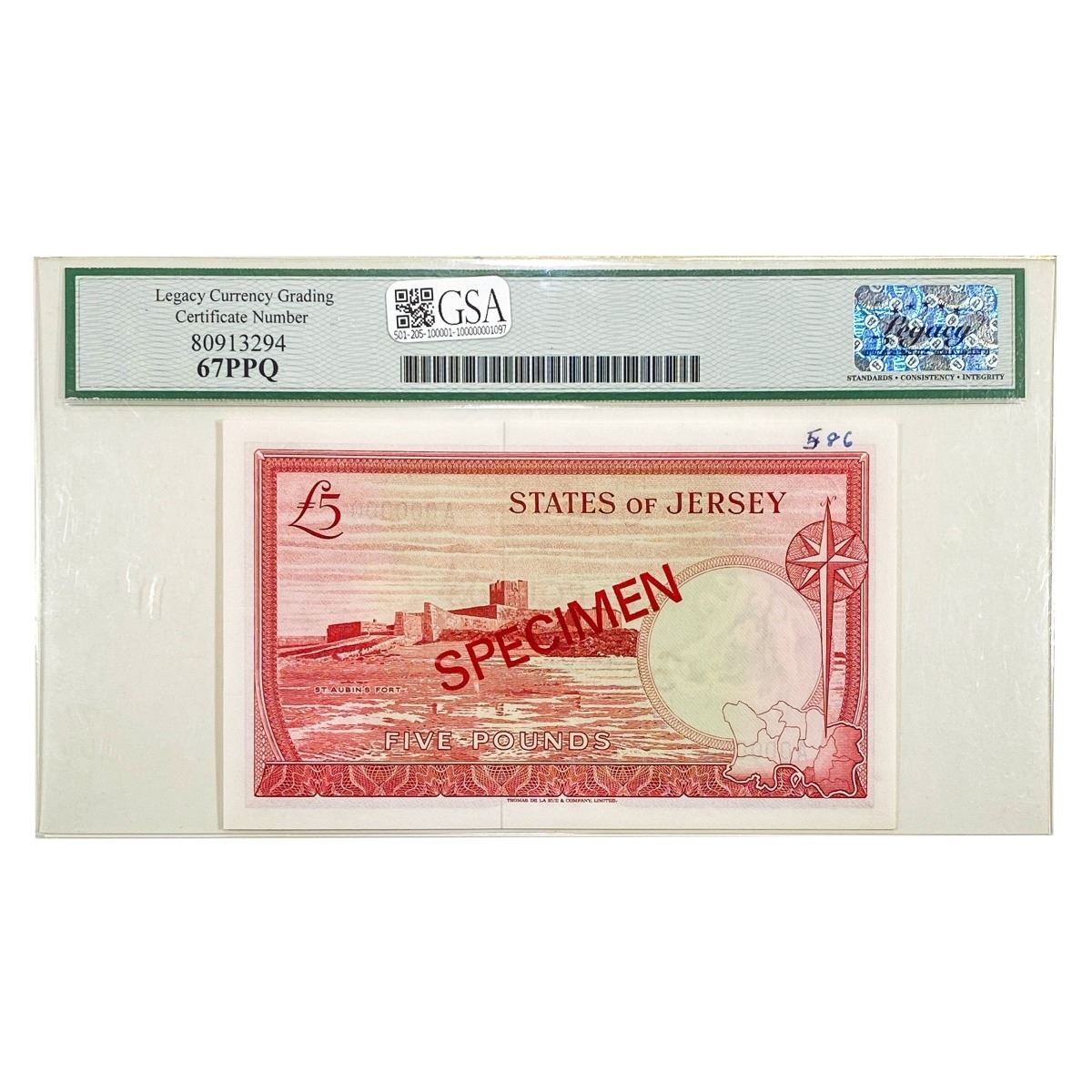 1963 Jersey 5 Pound ND Specimen Currency Legacy