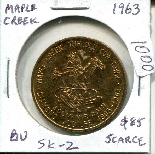 1963 Maple Creek, Sask. Diamond Jubilee Trade Dollar. SK-2. Saskatchewan’s second Trade Dollar. Scar