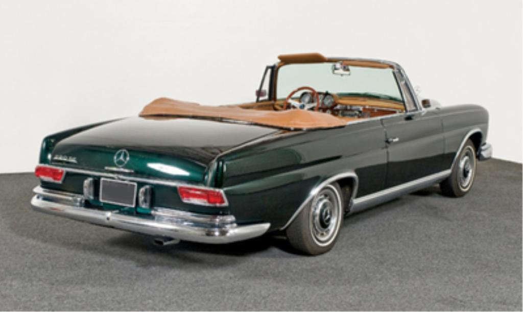 1963 Mercedes-Benz 220 SE Convertible 2195 cc inline six-cylinder engine rated at 134 horsepower, automatic transmission, independent front suspension with A-arms and coil springs, independent rear suspension with coil springs and swing axles, four-wheel drum brakes; wheelbase: 108.3"-The natural evolution of the Mercedes-Benz S Class was to a larger and even more luxurious four-passenger convertible. The newly redesigned car had a larger cabin, bigger seating areas, more storage and luggage space, and improved handling and performance. It was Mercedes-BenzÒs largest post-war cabriolet and would represent a huge success. Production of this body style would continue into the mid 1970s. This lovely car, being offered without reserve, is equipped with many great features that were not offered even five years prior. Automatic transmission, power steering, and power brakes were among the appointments that contributed to a nice driving experience. This car has been very well maintained from new with only a bare-metal re-spray and a beautiful new top being done as restorative work. The interior and driveline show what fastidious