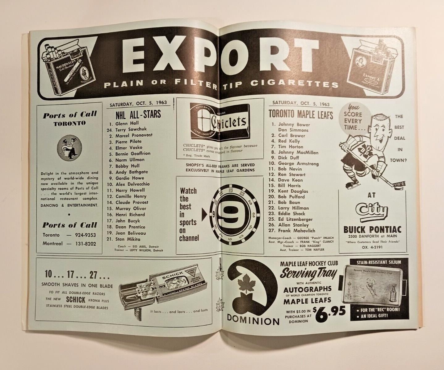 1963 NHL All Stars Vs Toronto Maple Leafs Program