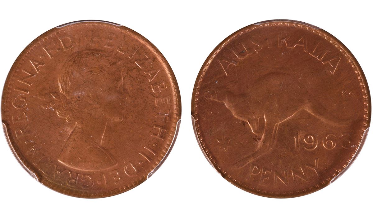 1963(P) Australian QEII Penny - PCGS MS64RB