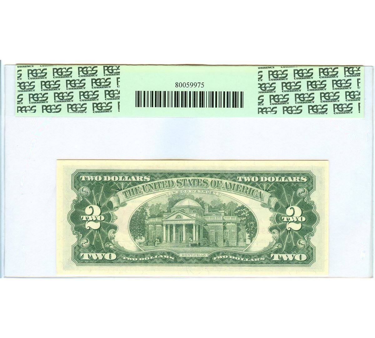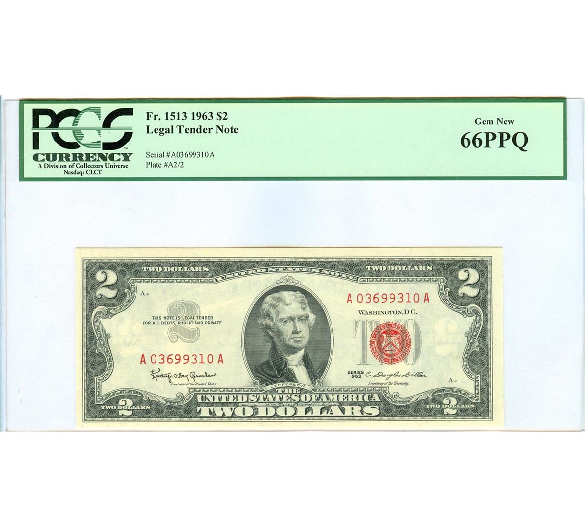 One 1963 PCGS GN66PPQ $2 Red Seal Legal Tender Bank Note.