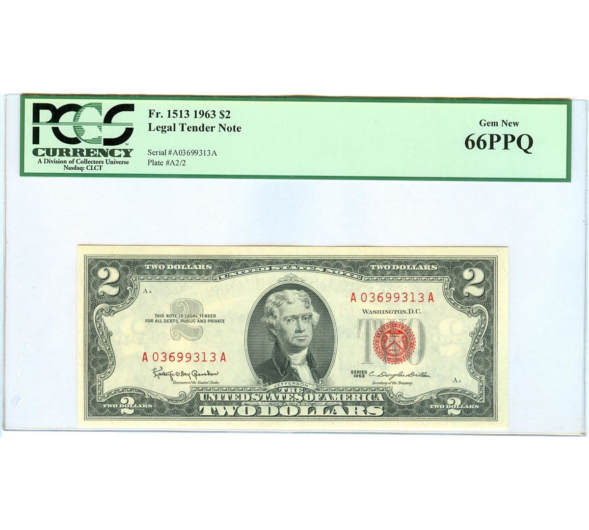 One 1963 PCGS GN66PPQ $2 Red Seal Legal Tender Bank Note.