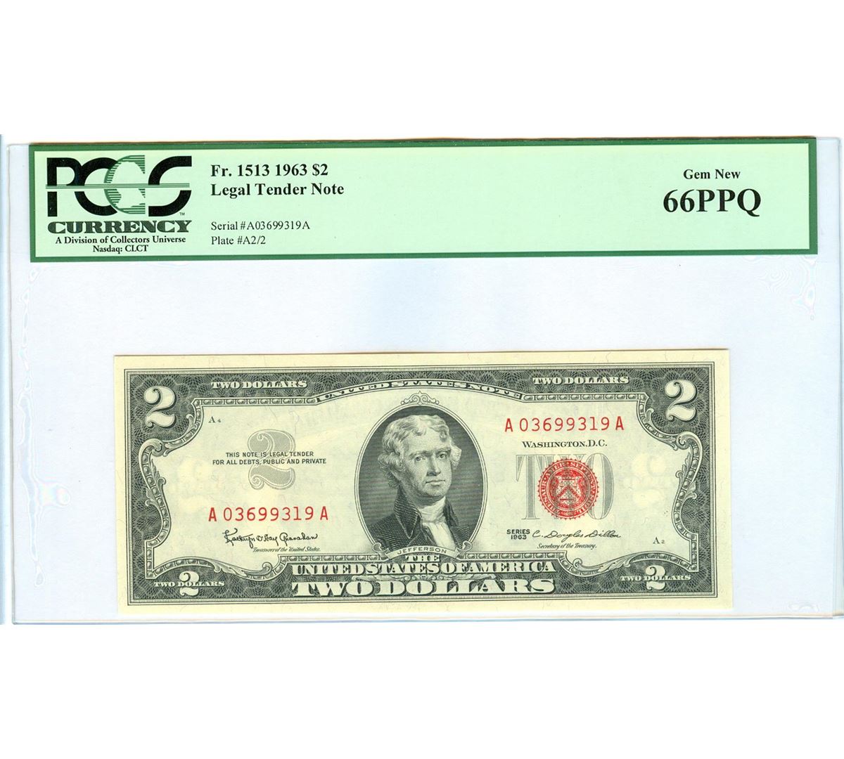 One 1963 PCGS GN66PPQ $2 Red Seal Legal Tender Bank Note.