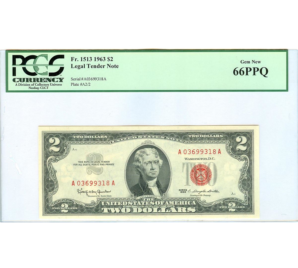 One 1963 PCGS GN66PPQ $2 Red Seal Legal Tender Bank Note.