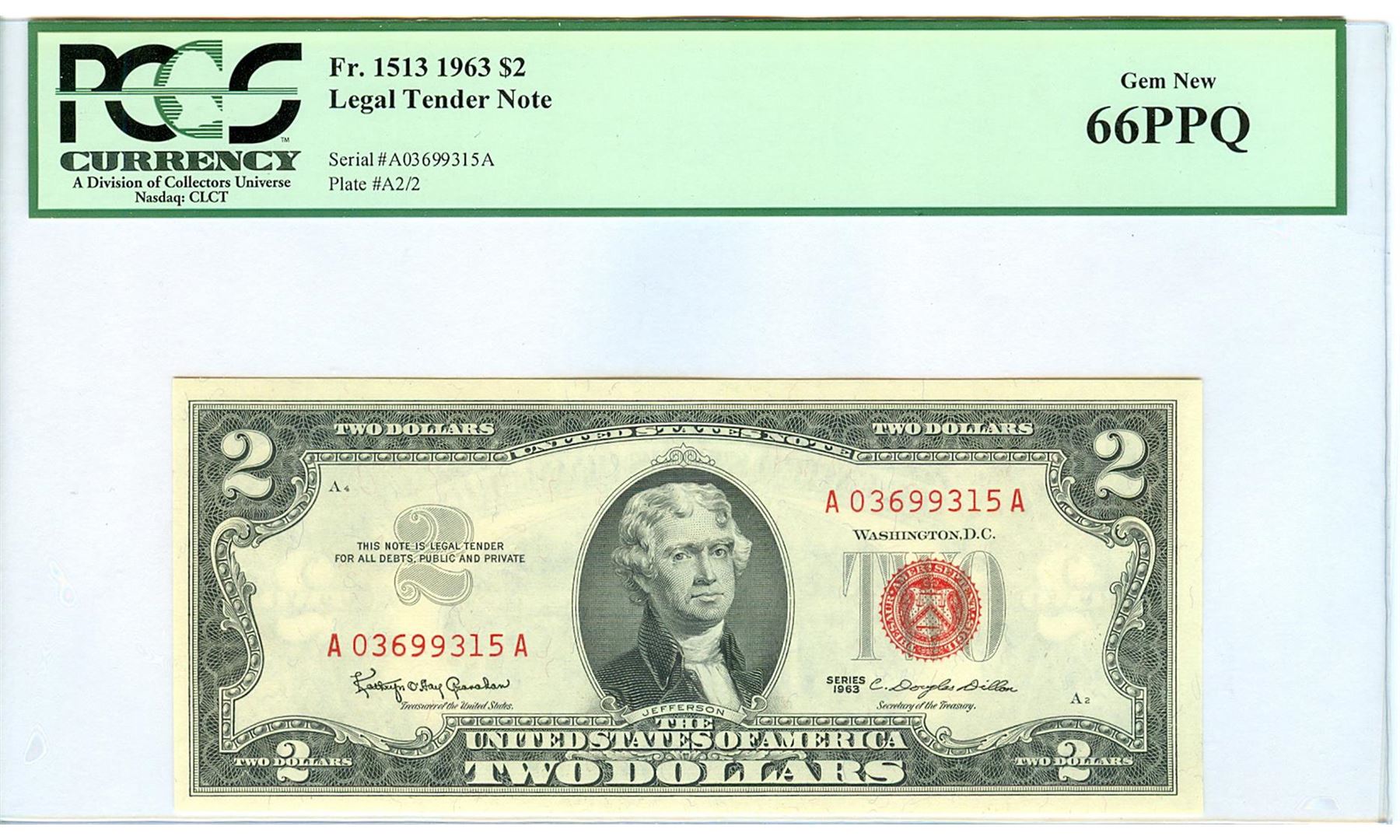 One 1963 PCGS GN66PPQ $2 Red Seal Legal Tender Bank Note.