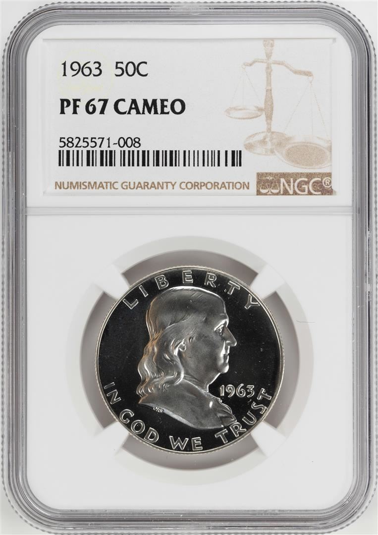 One 1963 Proof Franklin Half Dollar Coin NGC PF67 Cameo. NGC Certified.