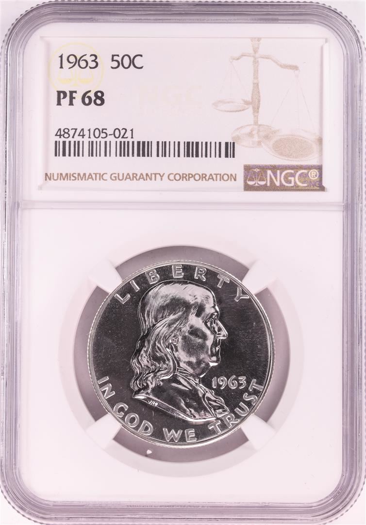 One 1963 Proof Franklin Half Dollar Coin NGC PF68. NGC Certified.