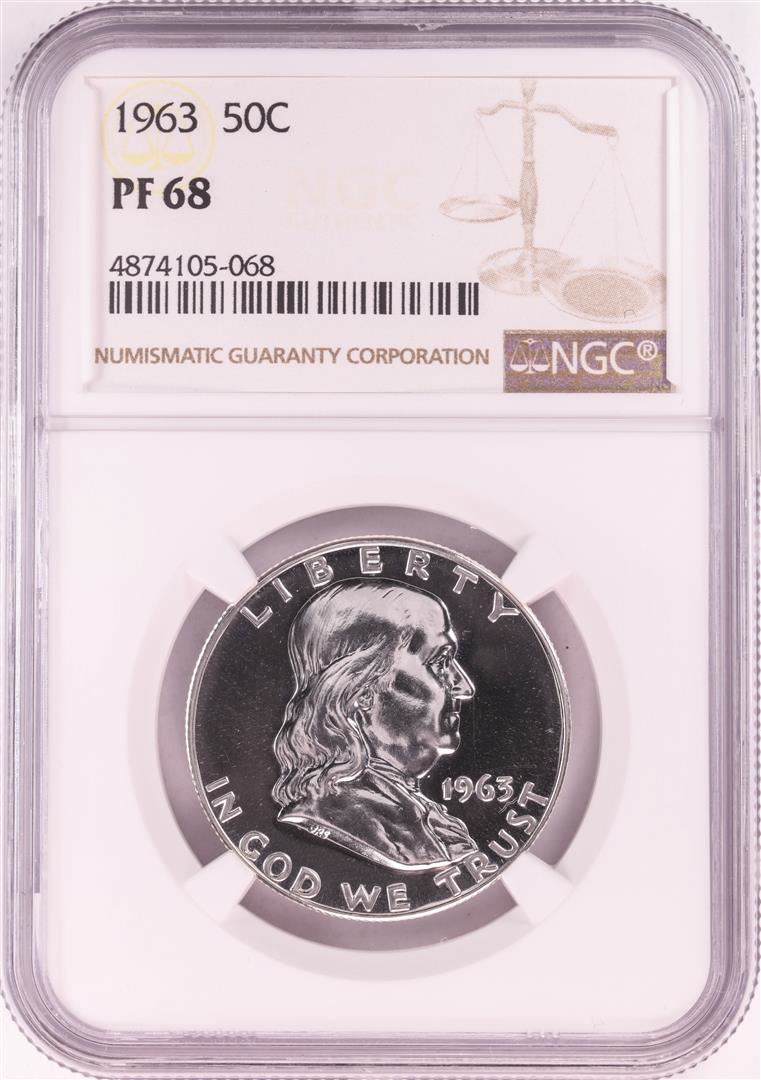 One 1963 Proof Franklin Half Dollar Coin NGC PF68. NGC Certified.