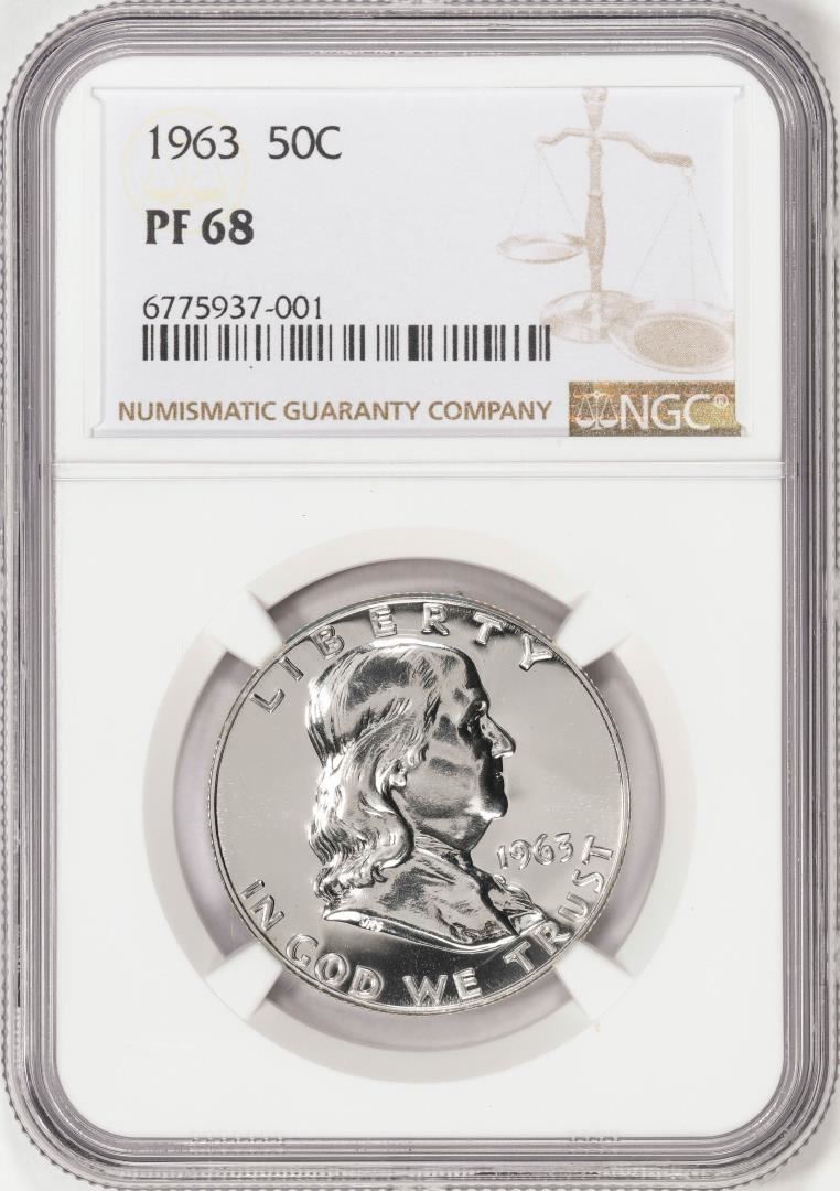 One 1963 Proof Franklin Half Dollar Coin NGC PF68. NGC Certified.