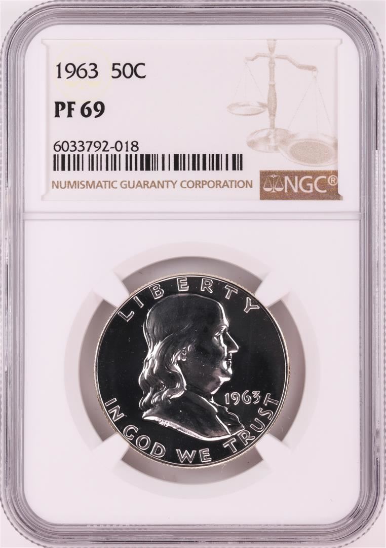 One 1963 Proof Franklin Half Dollar Coin NGC PF69. NGC Certified.