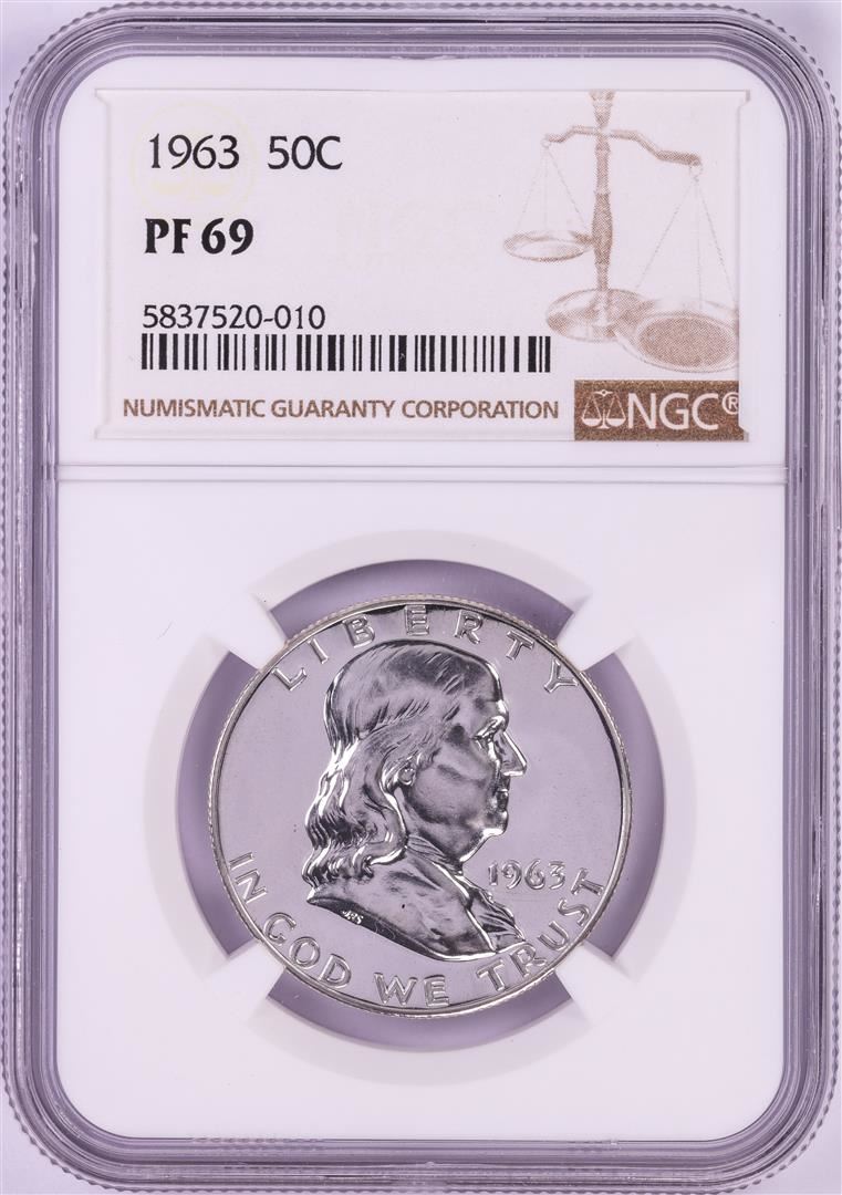 One 1963 Proof Franklin Half Dollar Coin NGC PF69. NGC Certified.