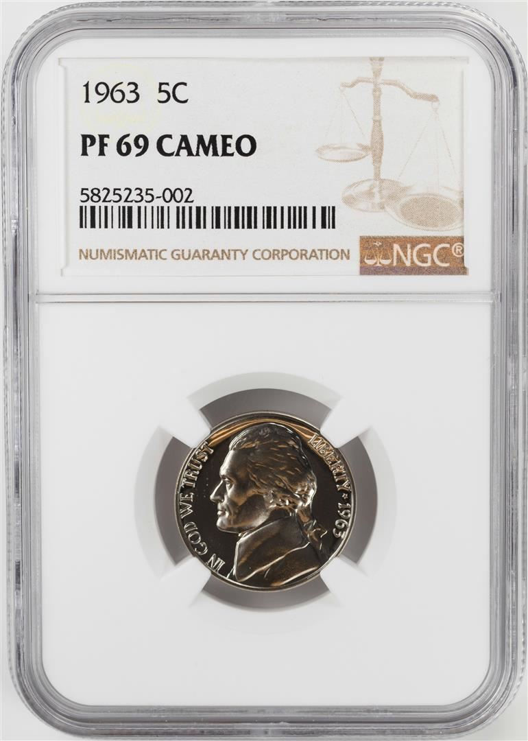 One 1963 Proof Jefferson Nickel Coin NGC PF69 Cameo. NGC Certified.