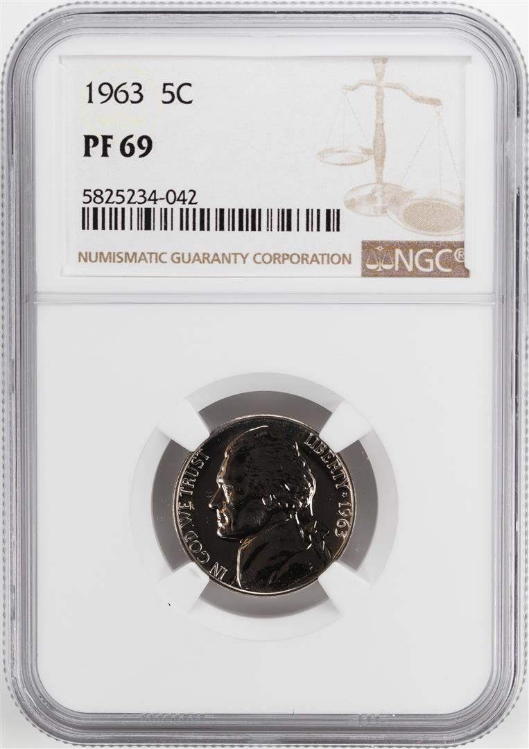 One 1963 Proof Jefferson Nickel Coin NGC PF69. NGC Certified.