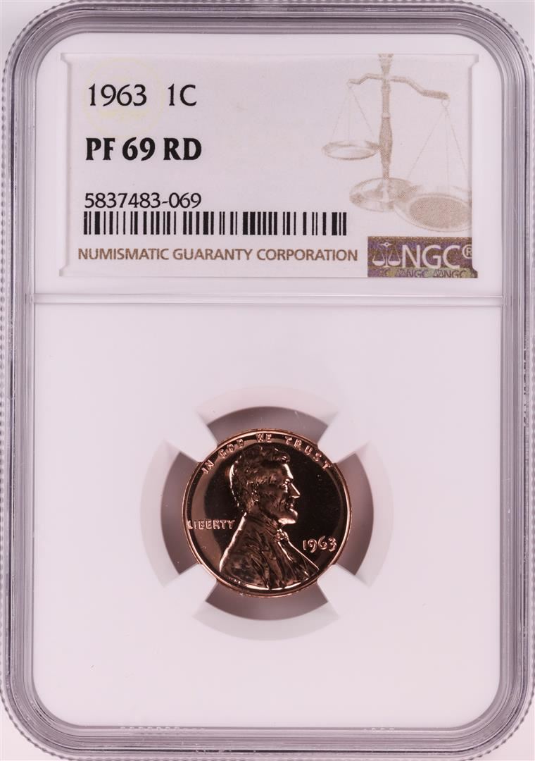 One 1963 Proof Lincoln Memorial Cent Coin NGC PF69RD. NGC Certified.