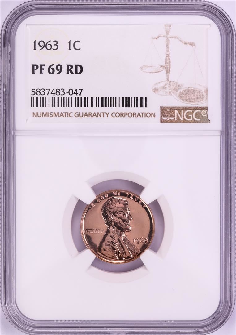 One 1963 Proof Lincoln Memorial Cent Coin NGC PF69RD. NGC Certified.