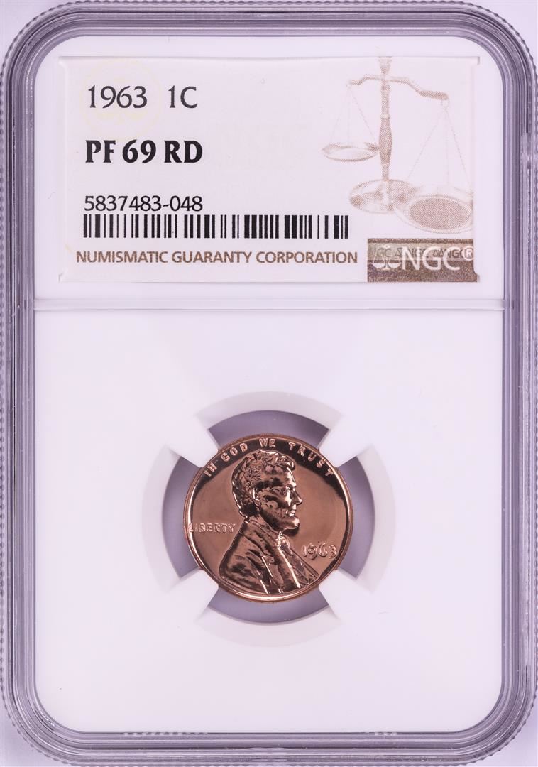 One 1963 Proof Lincoln Memorial Cent Coin NGC PF69RD. NGC Certified.