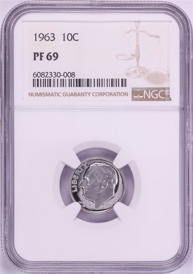 One 1963 Proof Roosevelt Dime Coin NGC PF69. NGC Certified.